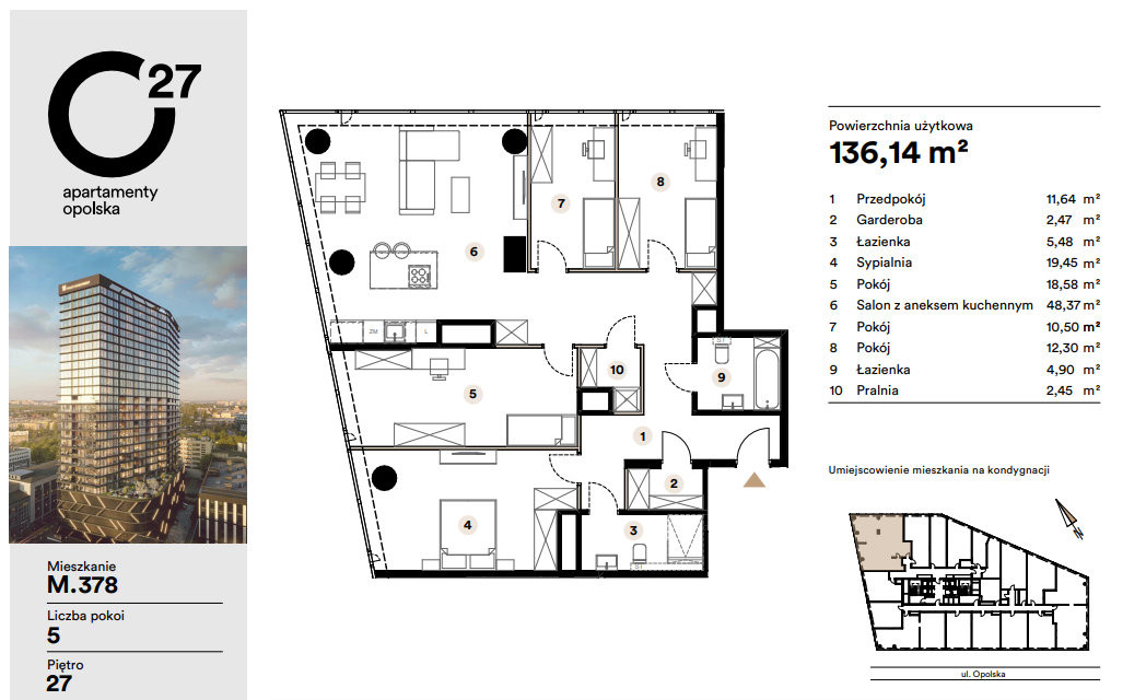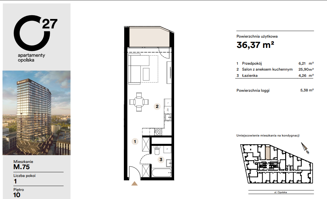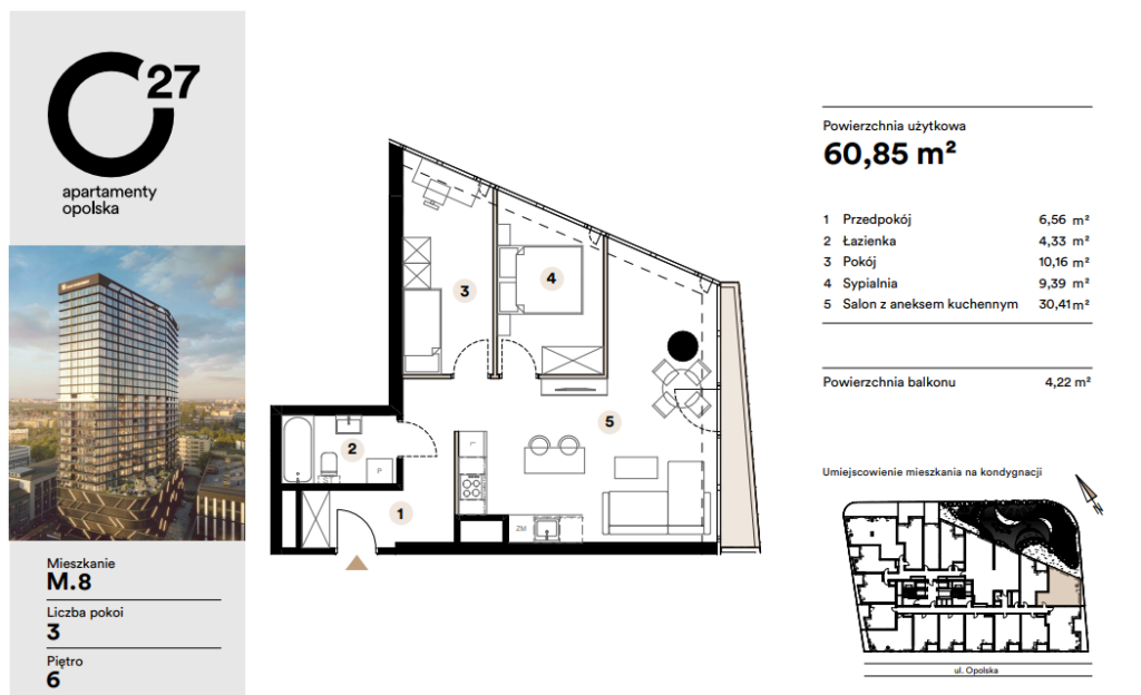 Projekt O27 Apartmány Opolská je moderní rezidenční novostavba v centru Katovic, která kombinuje vysoký standard bydlení s výrazným investičním potenciálem. Budova má 29 podlaží a nabízí širokou škálu bytových jednotek různých dispozic, vhodných jak pro vlastní bydlení, tak především pro investiční pronájem.